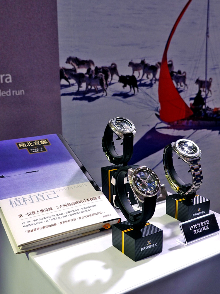 為慶賀潛水錶 55 周年,Prospex 於 8/27~9/23 於高雄夢時代 Seiko 旗艦店舉辦潛水錶 55 周年歷史錶展,錶迷將可一睹歷史錶款風采。此外,為讓錶迷感受 Prospex「勇無止境」的核心精神,凡於 9/1~12/31 至全台 Seiko 形象旗艦店購買任一 Prospex 錶款, 即贈植村直己經典傳記「極北直驅」一本。(數量有限贈完為止)