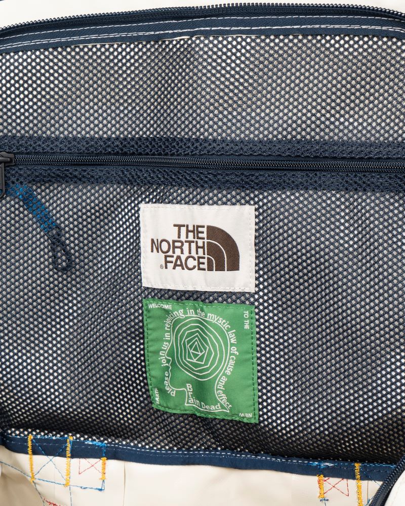 可以看到這次 THE NORTH FACE 大膽的運用眾多印花、塗鴉作為服飾的主要視覺表現,並挪用大量 BRAIN DEAD 的品牌形象,從防風外套到沙袋,耳目一新的配色與設計讓人強烈感受到 THE NORTH FACE 的野心。