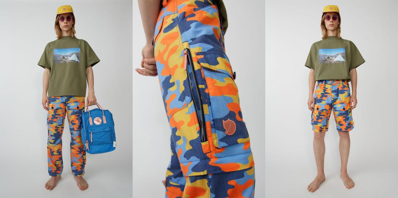 Acne Studios 設計出一系列外套、褲子以及翻玩 Fjällräven 最經典的 Kånken 背包,繽紛的色彩也替原本戶外服飾比較冷調的配色注入一股新活力。