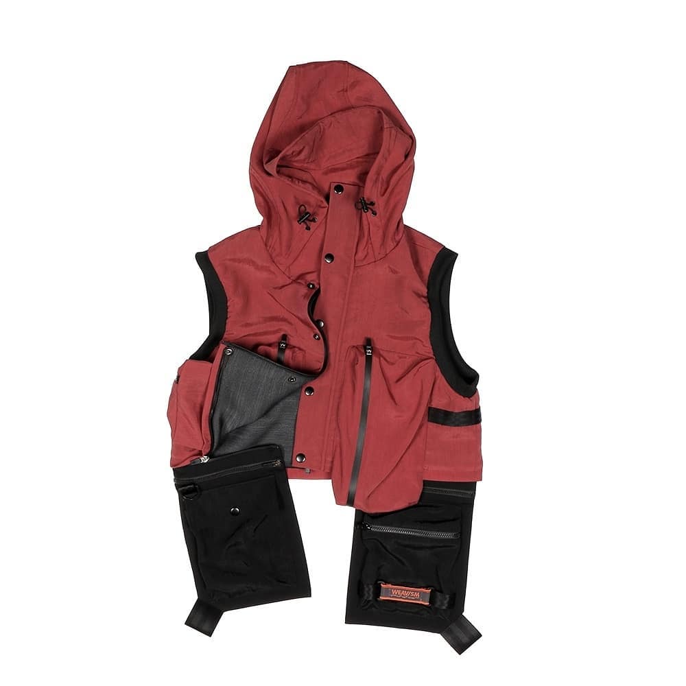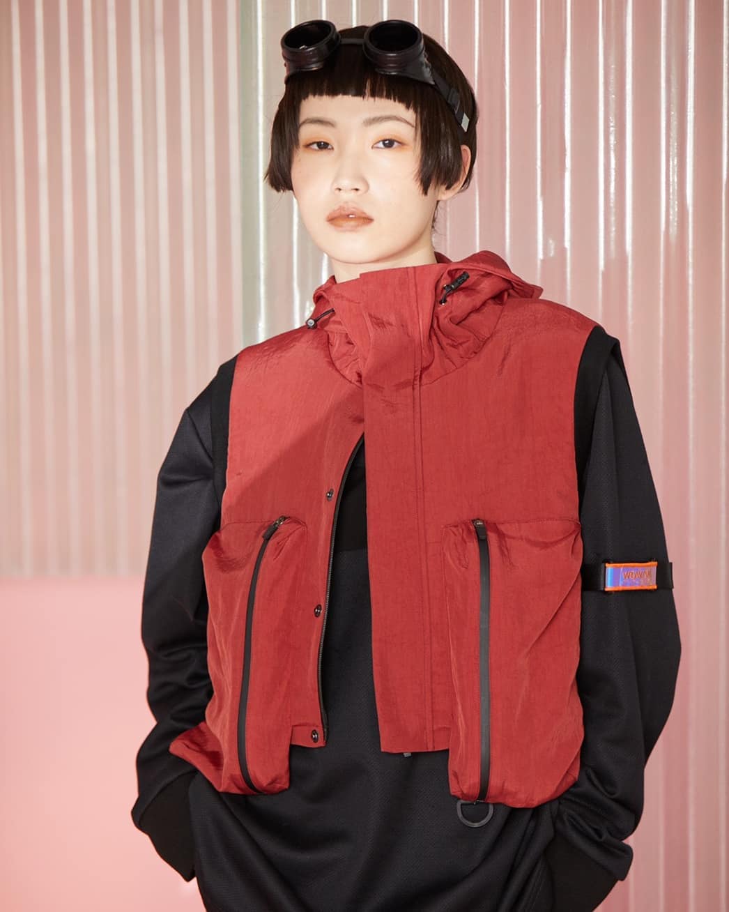 而近期 WEAVISM 釋出的 2020 秋冬系列也同樣強調以機能、永續為主題帶來一系列的單品,當中最吸引筆者的絕對是這款「口袋可拆卸」的連帽機能背心,在設計上延續 WEAVISM 拿手的異材質拼接風格,以及多口袋可拆卸的機能特性,並且在表面運用了特殊尼龍面料,刻意鈍色的光澤,在通過收縮處理帶來的微皺手感後,使其帶來全新的質感與穿著體驗。
