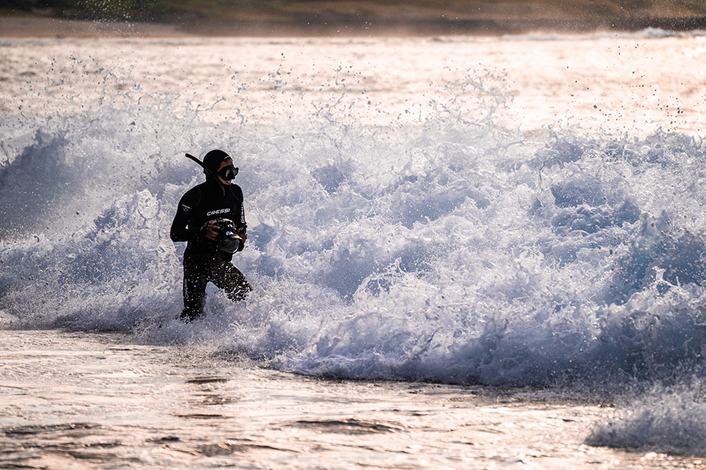 「跟朋友借相機來玩了幾次,我就決定要拍水下照片」他如此篤定的說。威智沒花很多時間就替自己的未來下了錨,立志成為一名「水下攝影師」,他說玩自由潛水出路大概有幾條,專業教學、競技、水下拍攝,他因為熱愛攝影,也喜歡在海裡,興起結合這兩條路線的想法。既然要走這條路,就得有一台好相機跟防水殼,當時的他如此相信這個道理,所以他心一橫,領出戶頭所有錢,替自己買了一台 Sony A7iii,相機到手後他全身上下只剩 4,000 元。