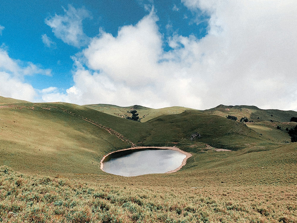 還有一次,走南一段,當時揹著很重的裝備,下坡踩在碎石坡上,她坦言她很害怕,甚至快哭出來,尤其她又是最後一個人,但當下她能做的也只能硬著頭皮靠著登山杖小心往下走。