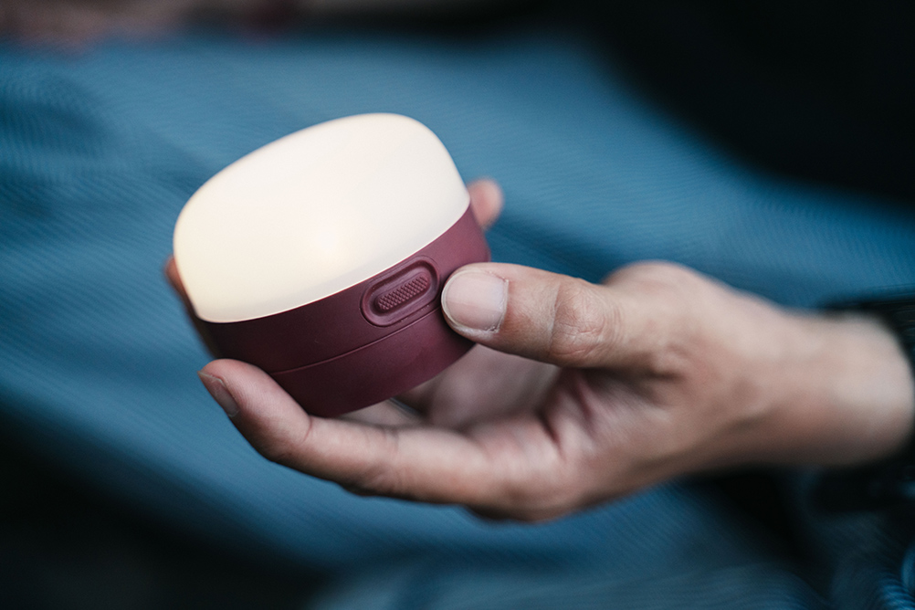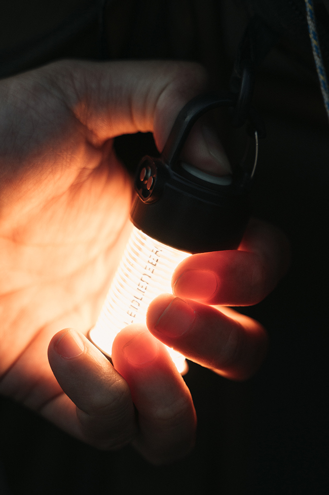 Moji 外型渾圓相當可愛,握在手裡也很舒服,特別採用磨砂燈罩,可以讓光線更加柔和,經我們實際使用,Moji 的光線與另外兩款小巧營燈完全不同,Moji 更像是家裡會出現的吸頂燈,也因為光線柔和,要作為帳篷內的夜燈完全可以,雖然官方並沒有數據表示最低亮度是幾流明,不過調到最暗作為小夜燈是很適合的。