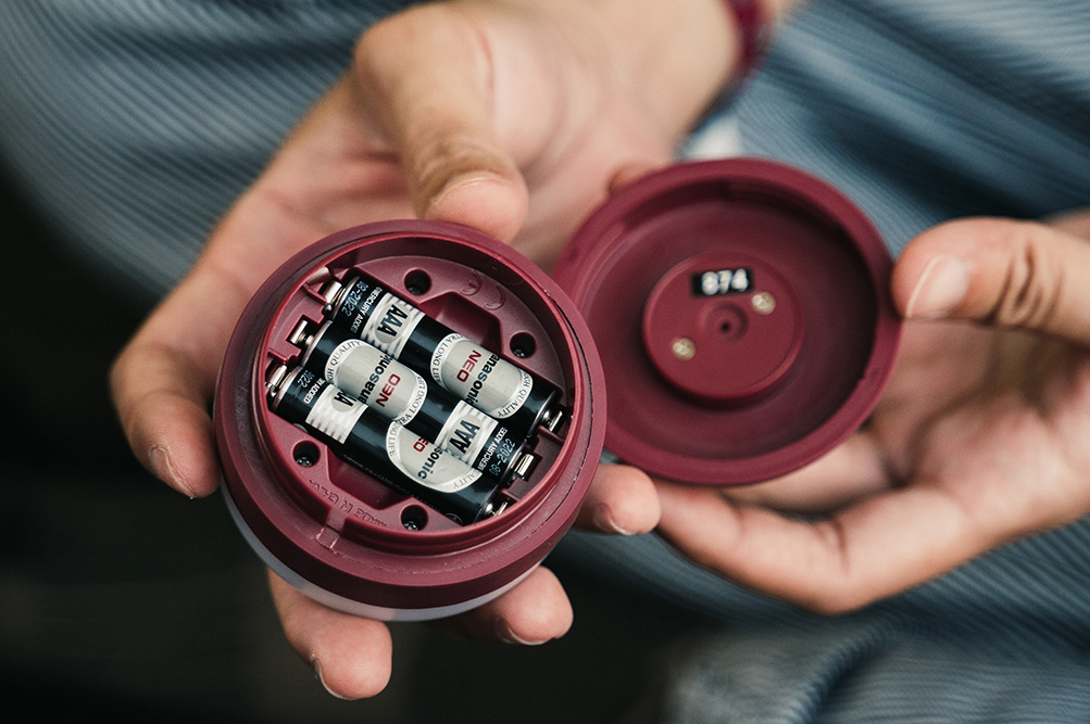 把底部轉開就可以放進三顆 AAA 電池,轉上可以稍微施力以免彈開,且如果沒有轉緊可能會滲水進去,要小心!Moji 的續航力相當驚人,根據官方資料,在最低亮度的情況下,可以持續 100 小時不必換電池,但這也根據你使用的電池而定,但我們猜想最差也可以至少 90 個小時不是問題。