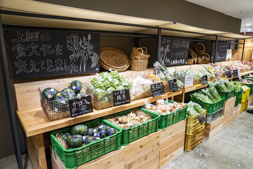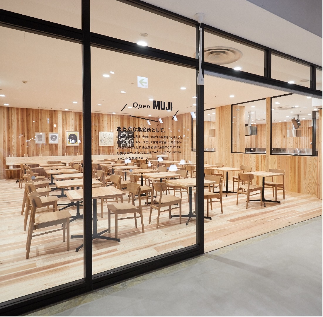 在直江津門市內結合了許多在地的文化特色。像是產地直送新鮮食材的超市、提供當地特色時令餐點的食堂、與在地廠商合作的戶外用品等等,大力推廣上越的在地魅力。雖然並非獨立門市,但總面積達 1,500 坪,商場內多達 7,000 個品項,號稱是全世界最大的 MUJI 門市。