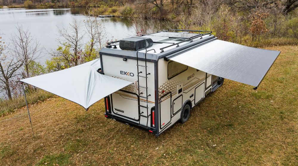 搭載了三個可輸出 455 瓦功率的太陽能電池板,和一個行駛時會為電池充電的交流發電機。在開車前往下一個目的地的同時一邊對輔助電池進行充電。此外 EKKO 配有 50 加侖的超大水箱與相稱的廢水箱,就算長時間待在戶外也能夠能源自給自足。