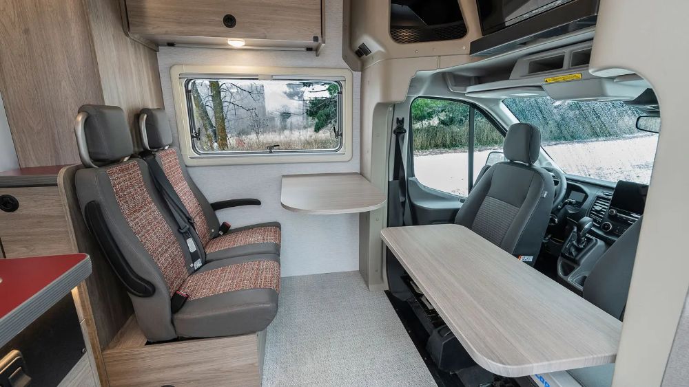 EKKO 使用 Ford Transit AWD 四驅底盤,配備 3.5 升 EcoBoost V6 引擎,通過高效的 10 速自動變速器能產生 310 馬力、最大扭力 400 lbf‧ft 的輸出。31 加侖的燃料箱,兼顧省油與長途續航性。在安全的設計上也不馬虎,自適應巡航控制、車道保持系統、碰撞前製動、駕駛員警報和新增的盲點監控系統,在長途的行駛中提供更高的保護性。