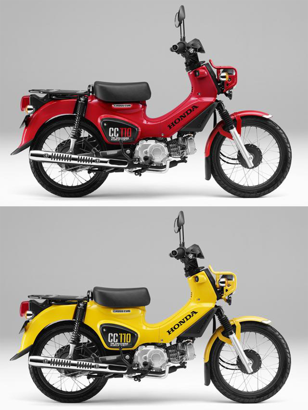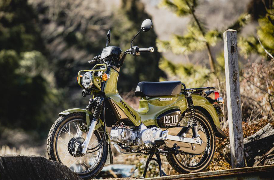 2018年新版 Cross Cub 110 撤掉了腳部擋板,讓車體看來更俐落。新的 LED 大燈的周圍加上保桿,原廠配胎則換上紋路較深的半越野胎,強化了戶外娛樂感,編輯被這款車燒到不行。