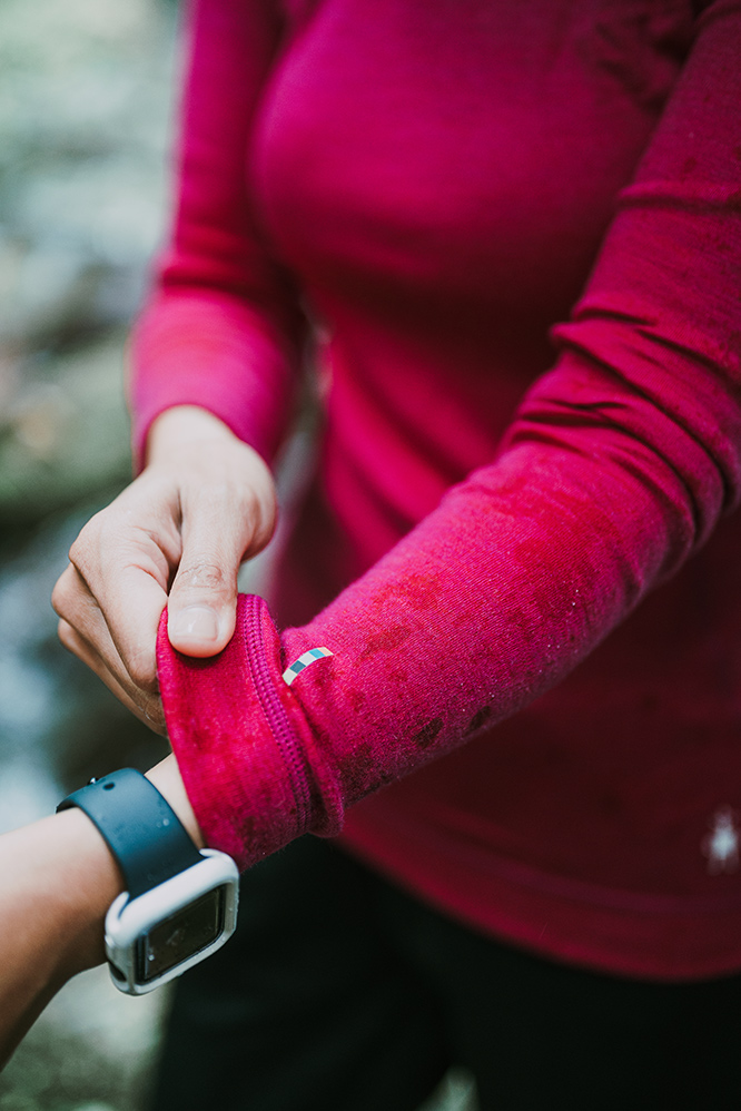 ▲登山停下來休息時,很多人會趕快卸下包包、拿出外套穿上。潘維她也是如此,但她發現如果只是稍作停留,只要穿上 Smartwool 羊毛衣,羊毛的控溫效能可以讓她不會因為短暫休息而感到寒冷。