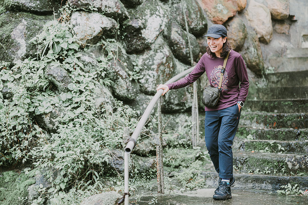 羊毛織品的另一個特點也深受潘維她的推崇,「在山上最怕濕了乾不了,不僅不舒服,還容易失溫,我之所以堅持穿羊毛衣、羊毛襪的原因就是快乾,像我們剛剛遇到下雨,才過幾分鐘,我身上的 Smartwool NTS250 就已經乾得差不多了。不過為了避免衣服過濕無法立刻乾,我建議大家可以多帶一兩套衣服上山,這樣就可以隨時更換。」