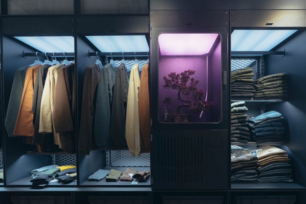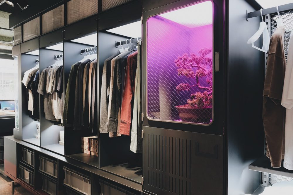 風格跳脫的台中店,是以 2040 為時空背景去想像人類的未來會發生什麼事情,以 「生存 」為主要核心概念打造出整間店的樣貌。當初在台南店計畫的那個時空背景下,戶外活動對人類來說是屬於比較悠閒的活動,比起生活需求,更像是日常中的一種娛樂消遣。而五年後的台中店反而從當時的生活概念轉變成為生存。