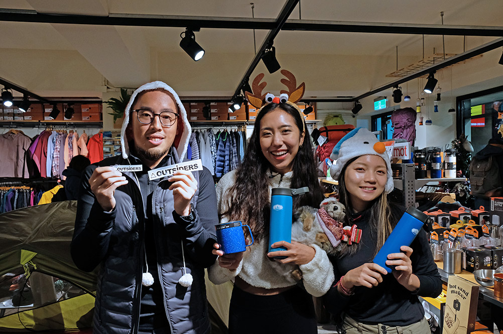 在舉辦 OUTSiDERS of The Year 的同時,我們特別推出加碼活動,由 OUTSiDERS 帶領兩位知名戶外人:柯柯、Cindy,一同到台北各大戶外用品店,跟店家交換禮物,並把換得的禮物回饋給讀者們。