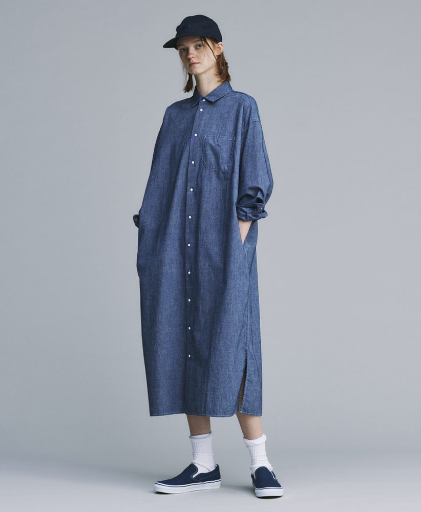 新系列包含了基本款 Tshirt、夾克、襯衫、長褲、短褲、包包、涼鞋等等,版型則延續近年來一貫的寬鬆風格,打破性別框架,每一件衣服都適合各種性別。當中幾件單品特別吸睛,像是上寬下窄的錐形丹寧褲,有淺藍、深藍色,色調溫潤,呼應春天的溫暖感覺;以及女生長版洋裝,有丹寧材質也有純棉織成,同樣以深淺不一的藍色呈現;格子襯衫、夾克、短褲,則利用了本系列的相關色系設計而成,像是黃色、灰色、綠色等等。