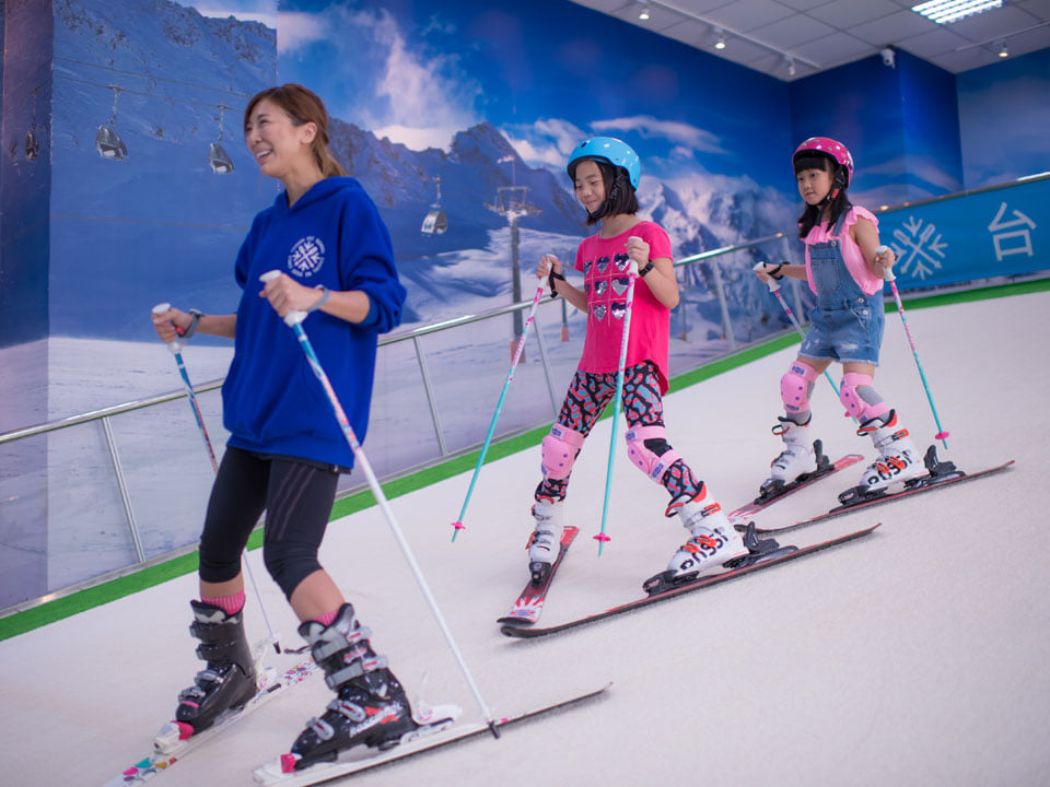 其實在都市裡也有可以練習滑雪的地方,而且搭乘捷運就可以輕鬆抵達。鄰近捷運西湖站的 iSKI,在桃園、新竹也有設立據點,桃園館還是全台第一家百貨店,機場捷運 A19 站直達,讓你練一練一站出國滑雪。歐洲原裝進口的機械式滾動滑雪機,就像是一台大型跑步機一樣。可調整速度的滾動式斜坡適合不同階段的練習,定時加濕的雪毯能模擬出更逼真的滑行感覺。從 4 歲孩童到大人,不同年齡的分級課程在專業教練的教導下,讓大人小孩都可以循序漸進的學習。許多初學者一開始會對上下纜車感到害怕,iSKI 特別規劃乾式滑雪坡,讓初學者在到真正雪場之前,能夠正確的掌握到安全上下纜車的方法。練習過程中都會有錄影器記錄下動作,即時調整姿勢。 此外場內也會提供滑雪板和護具,學員只要穿著簡單好活動的服飾即可。