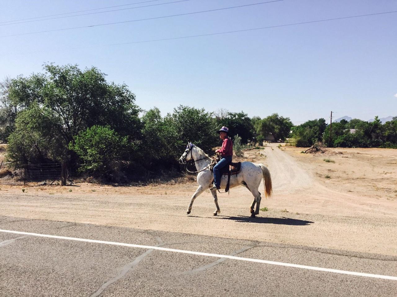 在這個到處都騎馬的 Hanksville 小鎮,他們的 Gymkhana 指的是最傳統的馬術障礙賽,選手騎著馬挑戰指定的路線,通常是繞過放在地上的幾個輪胎,再回到原點,看誰的秒數最短。可以看到有的選手 15、16 歲,就已經練馬術好幾年了,馳騁在沙地上,英姿非凡。