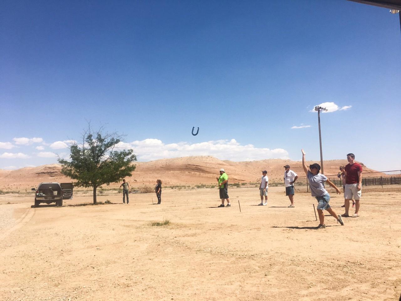 下午,太陽更加無情地曝曬著,少了遊行水球的滋潤,我的雙唇像這片沙漠一樣乾燥,但似乎不減馬蹄鐵錦標賽參賽者的熱情。