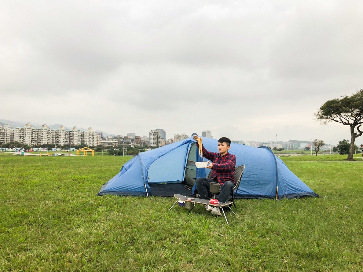 ▲ 營釘插在露營的草地裡是非常穩固的。