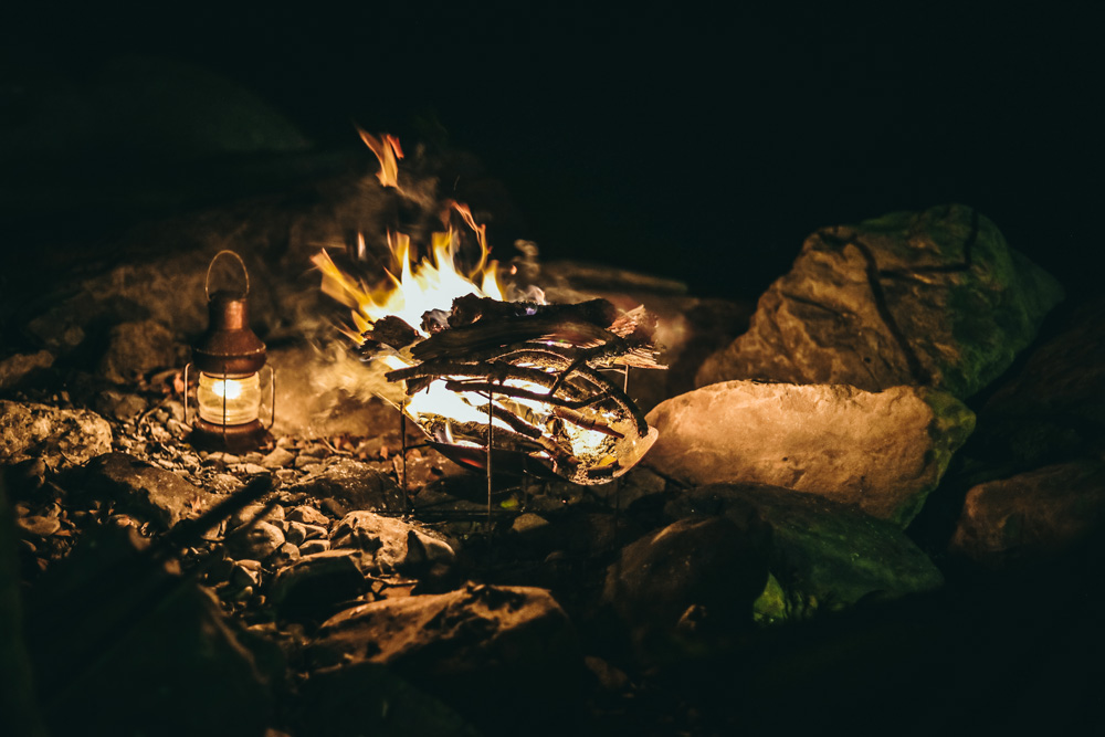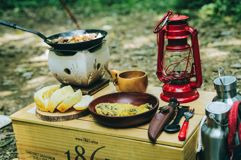 「我野營一定會帶一個煤油燈,在營地點起煤油燈,自然原始的感覺會瞬間散發出來。」野營沒有帶太多哩哩摳摳的東西,Stewart 一定會帶煤油燈,增添野營的氣氛,同時還有柴刀、直刀,「我後來野營一定會帶刀,就算沒有要劈柴還是會帶,已經變成一種習慣了。」他笑著說。看他影片,他總是習慣自己撿柴火,然後一刀一刀的砍柴,接著丟進焚火台,讓溫熱的火焰隨著木柴的香氣溫暖身心靈。