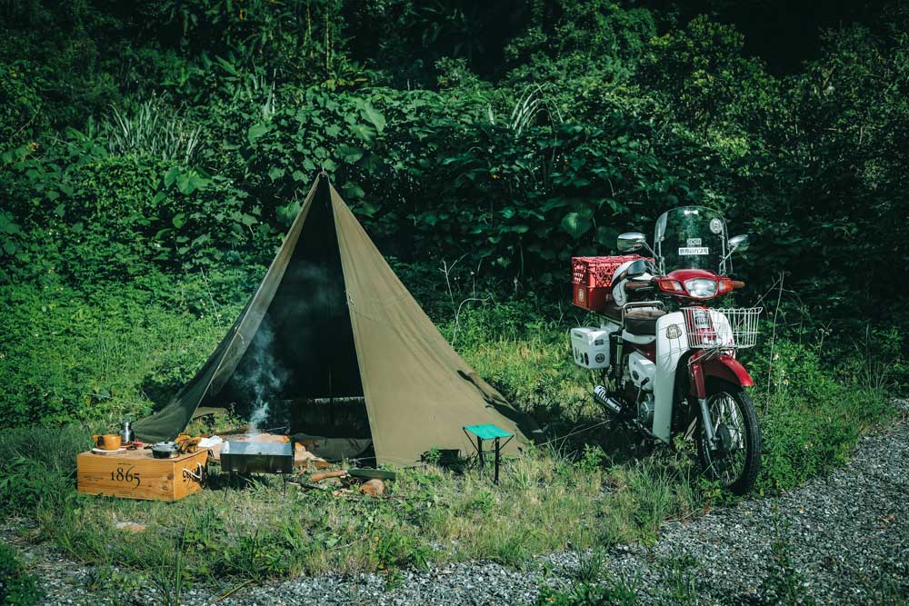 說起露營,雖然 Stewart 的第一次野營失敗作收,他反而對機車野營產生濃厚的興趣,「我以前就很喜歡往戶外跑,念書的時候假日還會跟同學去溪裡釣魚,只是後來身邊沒有人在露營,剛好這位朋友喜歡露營,我就覺得可以騎車又可以接觸戶外,滿不錯的。」他接著說:「小時候還會在房間搭起一個自己的小基地,在裡面看漫畫、吃零食,我覺得野營可以給我這種感覺。」