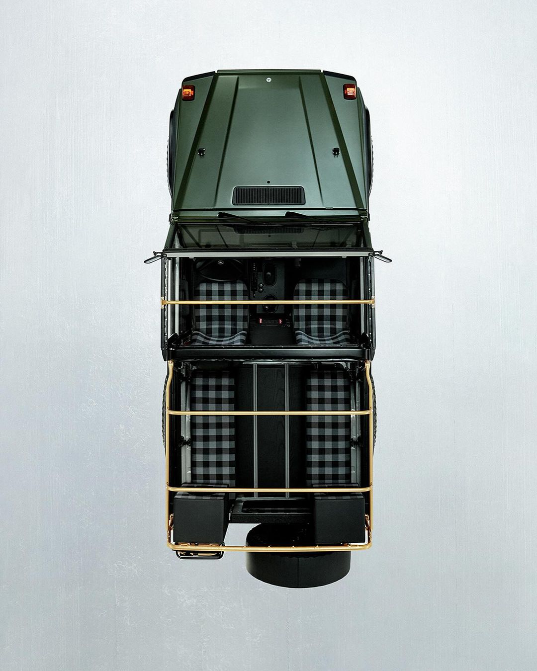 除了內裝將 90 年代的設計元素與現代更新融為一體,還有更新的儀表板和方向盤,中控台上刻有車輛的「1 of 20」限量編號。而格紋座椅裝飾圖案是對早期 G-Class 車型典型設計元素的詮釋,橙色和金色的點綴與 Mercedes-Benz、Moncler 和 NIGO 的合作時尚系列相呼應。